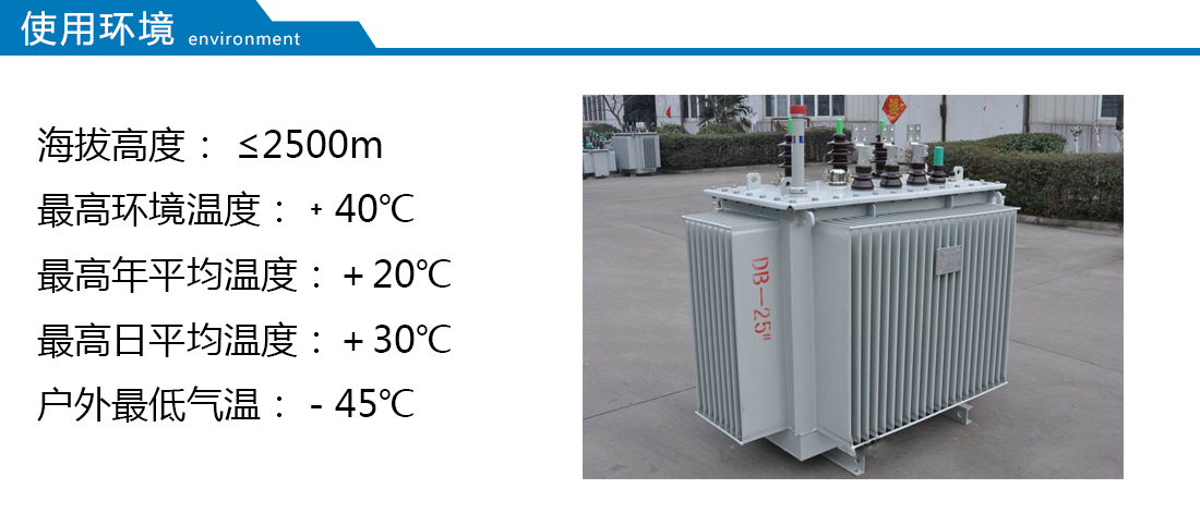 此類產(chǎn)品適用于交流50(60)Hz,三相最大額定容量2500kVA(單相最大額定容量833kVA,一般不推薦使用單相變壓器),可在戶內(nèi)(外)使用,容量在315kVA 及以下時可安裝在桿上,環(huán)境溫度不高于40℃,不低于-25℃,最高日平均溫度30℃,最高年平均溫度20℃,相對濕度不超過90%(環(huán)境溫度25℃),海拔高度不超過1000m。