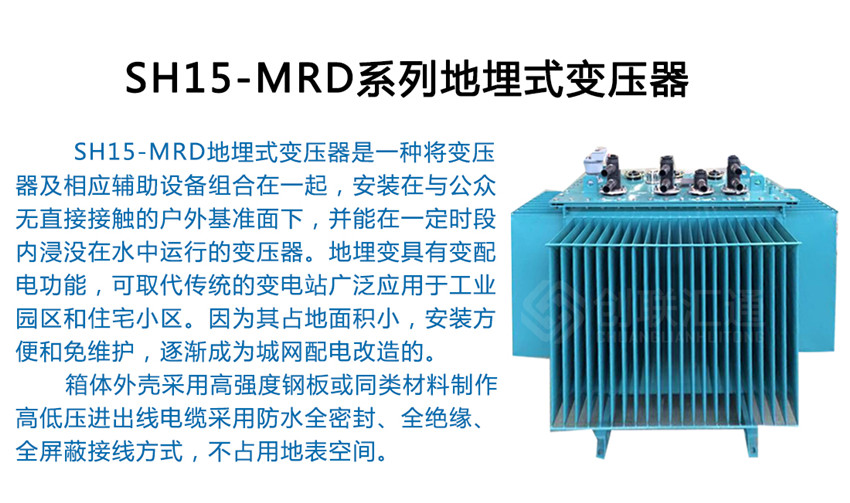 SH15-MRD地埋式變壓器是一種將變壓器及相應輔助設(shè)備組合在一起,安裝在與公眾無直接接觸的戶外基準面下,并能在一定時段內(nèi)浸沒在水中運行的變壓器。地埋變具有變配電功能,可取代傳統(tǒng)的變電站廣泛應用于工業(yè)園區(qū)和住宅小區(qū)。因為其占地面積小,安裝方便和免維護,逐漸成為城網(wǎng)配電改造的新方向。